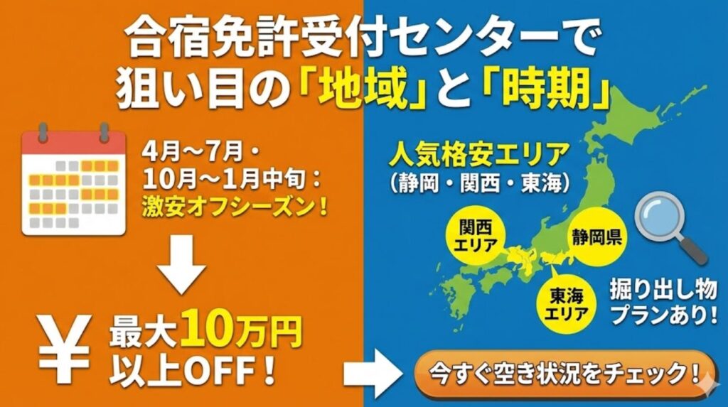 特に「静岡県」や「関西エリア」の教習所は、競争が激しいため料金が下がりやすい傾向にあります。