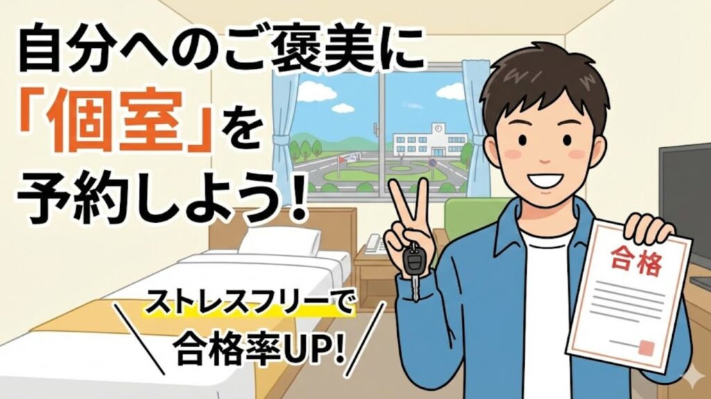 そう思っているあなた。その感覚は正しいです。 合宿免許における「シングル(個室)プラン」は、単なる贅沢ではありません。それは、2週間という長い戦いを勝ち抜くための「最強の防空壕」です(笑)。