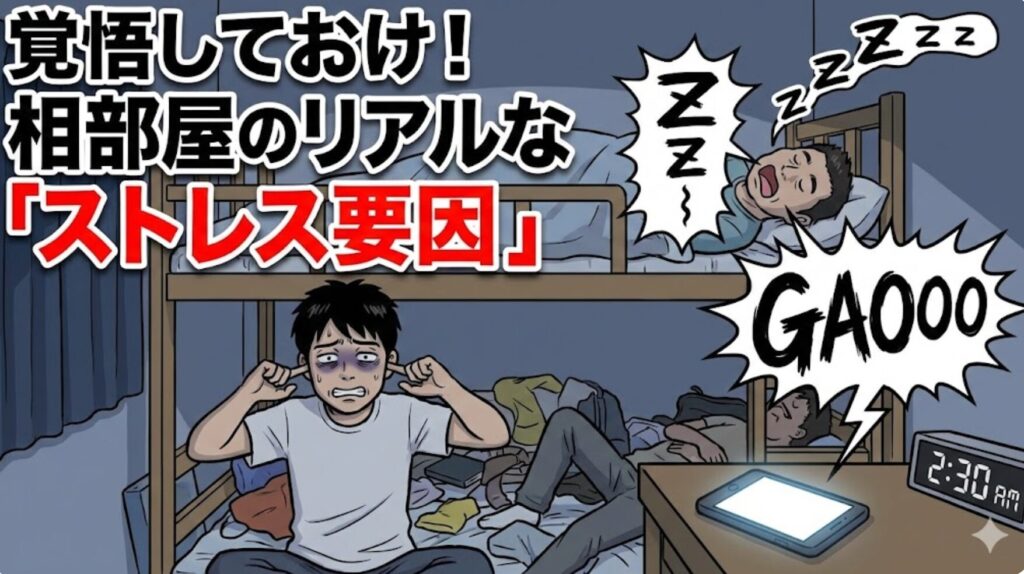 そう考えた瞬間、不安になりますよね。 いびきがうるさかったらどうしよう、変な人だったらどうしよう、気まずくないかな・・・結論から言うと、相部屋は「運(ルームメイトガチャ)」の要素が強いです。