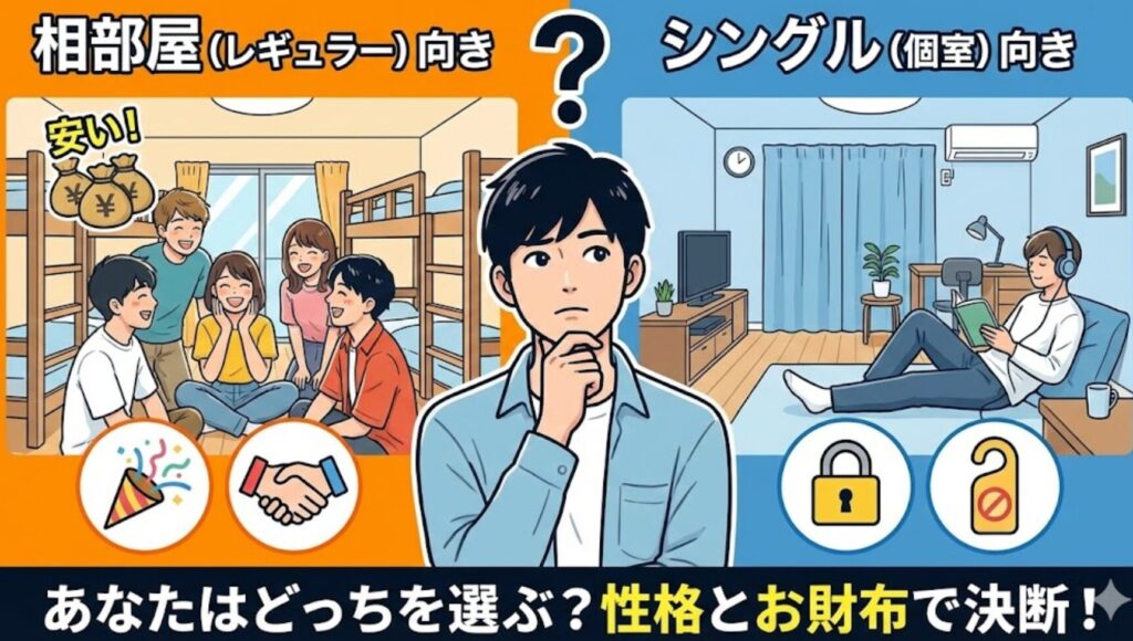 今回は、そのギャンブル性を理解した上で、あなたが「相部屋を選ぶべきか、2万円払ってシングルに逃げるべきか」を決めるための判断材料をすべて公開します。