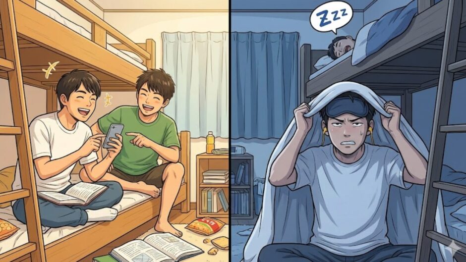 そう考えた瞬間、不安になりますよね。 いびきがうるさかったらどうしよう、変な人だったらどうしよう、気まずくないかな・・・結論から言うと、相部屋は「運(ルームメイトガチャ)」の要素が強いです。