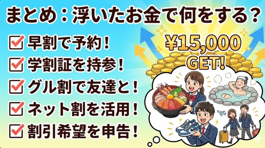 - 申し込み時に必ず「割引希望」を申告する!