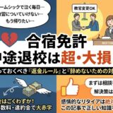 もし万が一、視力不足や体調不良で日程変更になった場合、個人で直接教習所に申し込んでいると手続きが非常に大変です。 「合宿免許受付センター」などの大手の予約サイトを通していれば、トラブル時もコールセンターがサポートしてくれます。安心して任せられるサイトの選び方については、以下の記事で徹底検証しています。